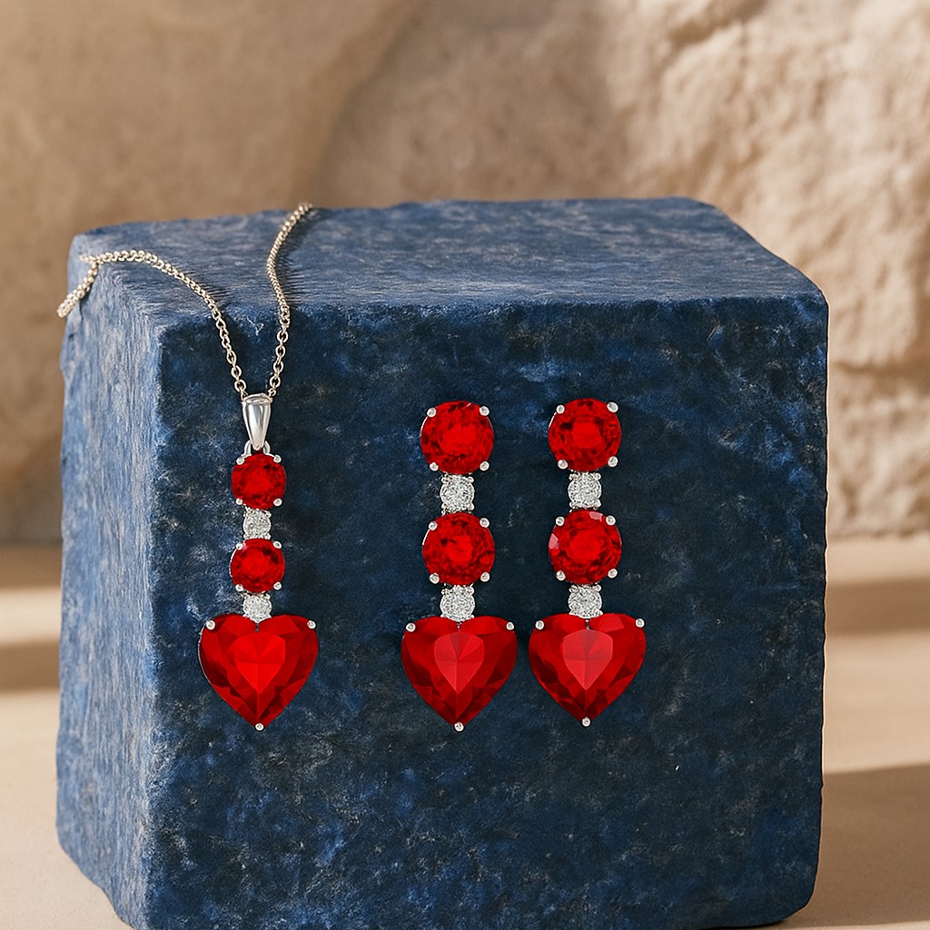 • The Amour Éternel Earrings echo the pendant’s elegance with a harmonious rhythm of stones that descend in a perfect balance of brilliance and form. Each earring features a heart-cut gemstone, framed by two round companions above, creating a flowing silhouette that elongates and flatters. With customizable gemstones and the artistry of your chosen gold color, these earrings become an intimate reflection of passion, sophistication, and individuality.