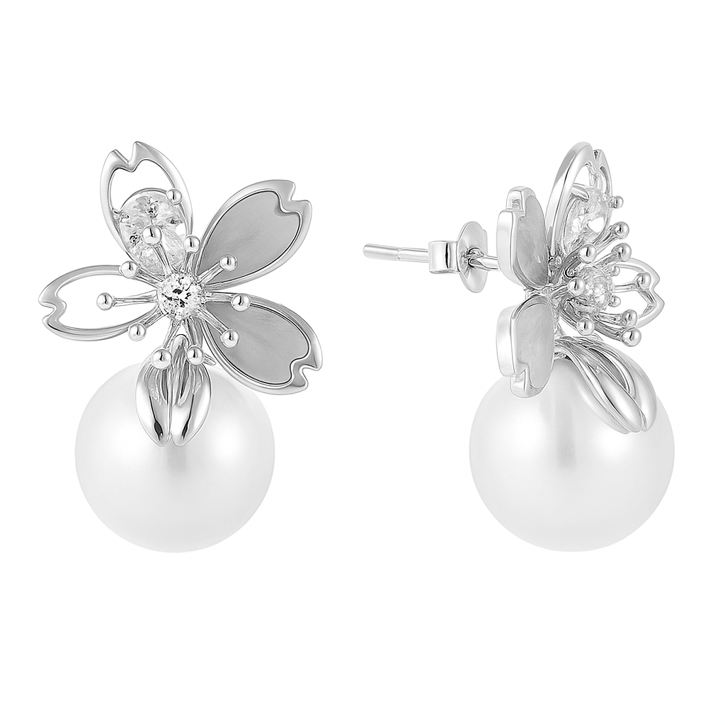Exquisitely feminine, these earrings bloom with soft petal details in 18k gold, adorned with VS1 diamonds and crowned by a freshwater pearl. Inspired by the fleeting grace of spring blossoms, they embody renewal, elegance, and everlasting romance.