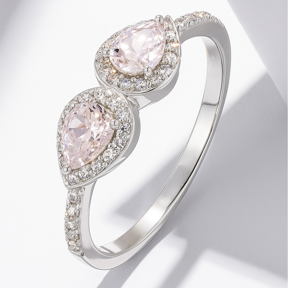 Two pear-cut diamonds — here shown with delicate blush tones — mirror one another in perfect symmetry. A symbol of balance, connection, and eternal duality.