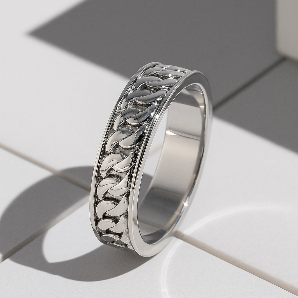 Polished gold weaves into a classic chain design, embodying strength, loyalty, and timeless style. Understated yet powerful, this ring is a testament to bonds that can never be broken.