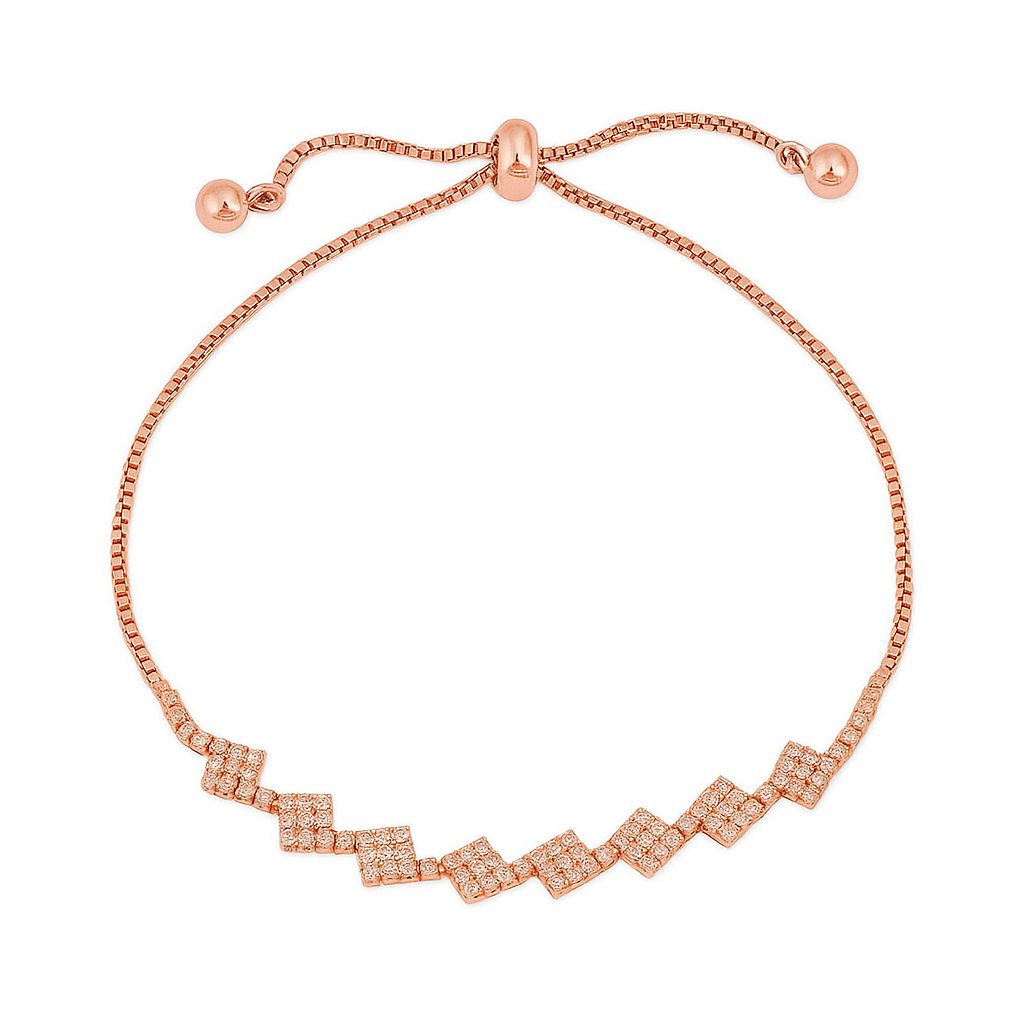 • A modern ode to geometry, this bracelet features a flowing succession of diamond-studded squares, each angled to catch light in rhythmic harmony. The piece embodies strength and grace, ideal for the woman who commands elegance effortlessly.