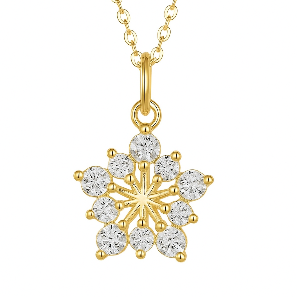 • This pendant captures the fleeting poetry of a snowflake, sculpted in luminous gold and adorned with fine details that shimmer with every movement. Its six-pointed design symbolizes purity and renewal, making it a timeless piece that carries the magic of Christmas close to the heart. Available in white, rose, and yellow gold, it offers versatile elegance for every season.