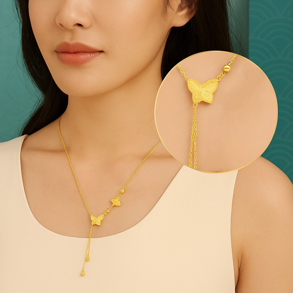 A delicate 916 gold necklace that captures the beauty of butterflies in motion — a symbol of freedom, grace, and transformation.