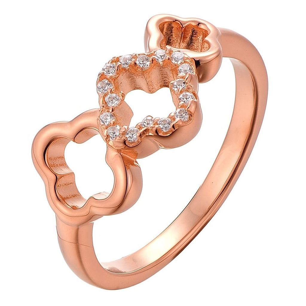 A contemporary emblem of luck and elegance, this 18K gold ring displays three interconnected clovers, with one radiating the sparkle of VS1 diamonds. Each curve is polished to perfection, making it both a statement of personal style and a timeless symbol of positivity. Available in white, rose, or yellow gold.
