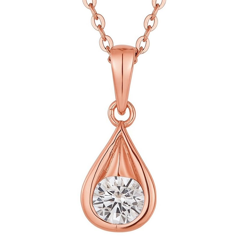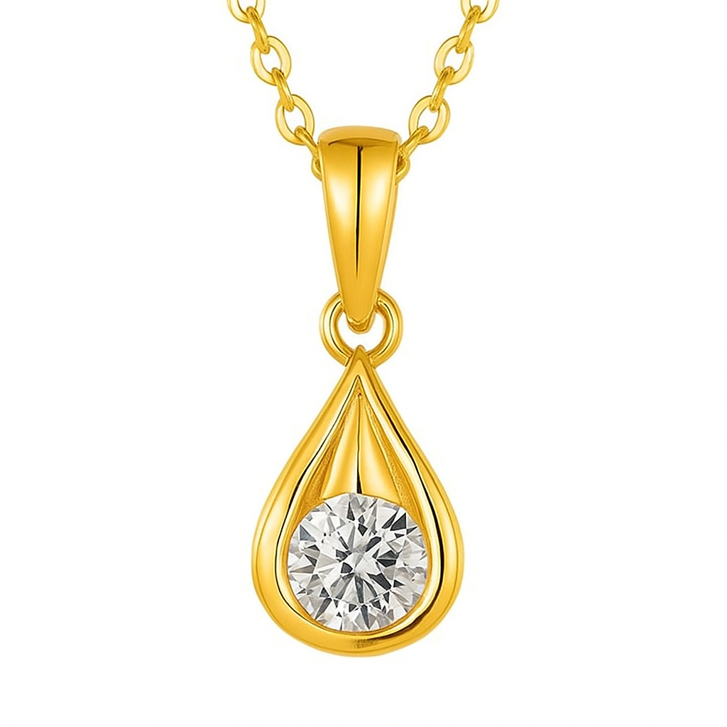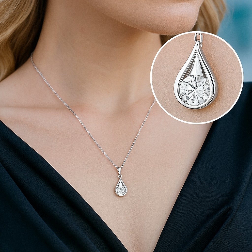 Set in a teardrop silhouette, a solitaire VS1 diamond sparkles with unmatched brilliance. Symbolizing purity and clarity, this piece offers understated elegance that complements every style.