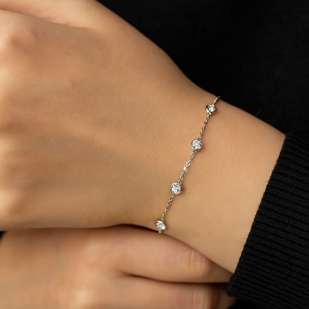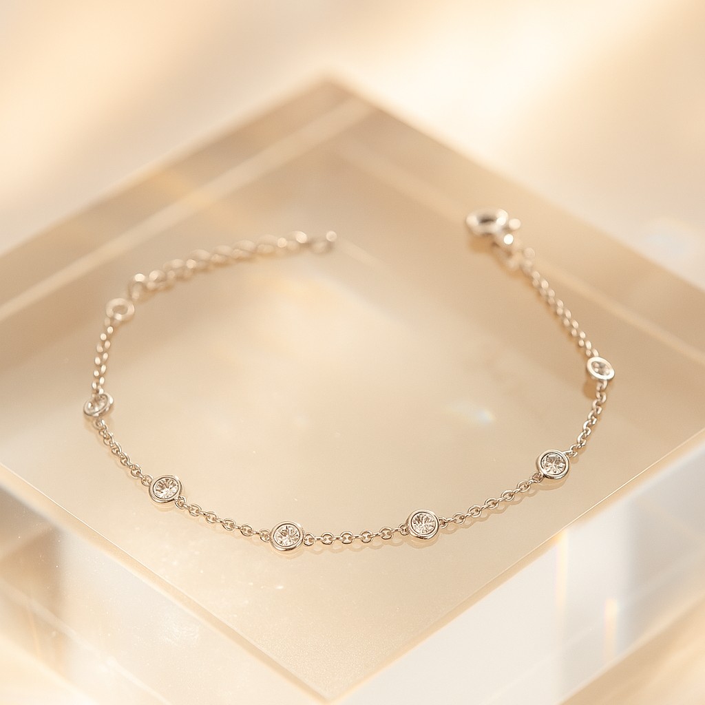Alternating VS1 diamonds rest in delicate bezels, their brilliance linked by fine gold chain. This bracelet embraces classic luxury, versatile enough to layer yet luminous enough to wear alone.