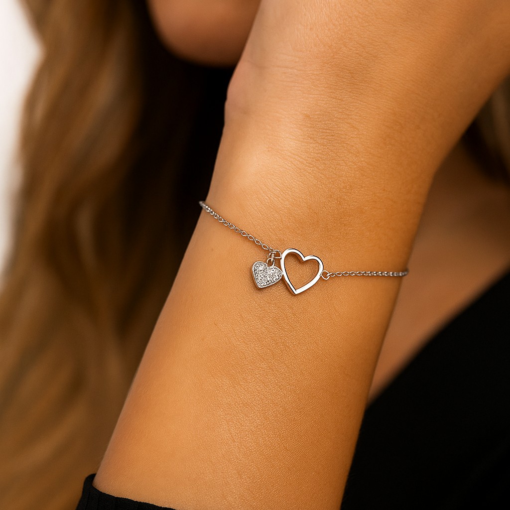Two hearts intertwined — one diamond-studded, one open — creating a perfect harmony of passion and freedom. A poetic expression of duality in love.