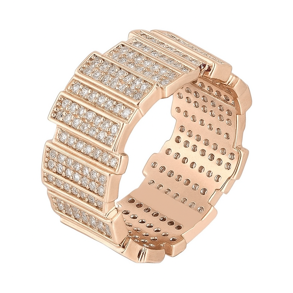 18k white, rose, or yellow gold with VS1 diamonds A bold statement of power and refinement, this wide pavé-set band glitters with endless rows of diamonds. Radiant yet commanding, it embodies confidence, luxury, and a brilliance that reigns eternal.