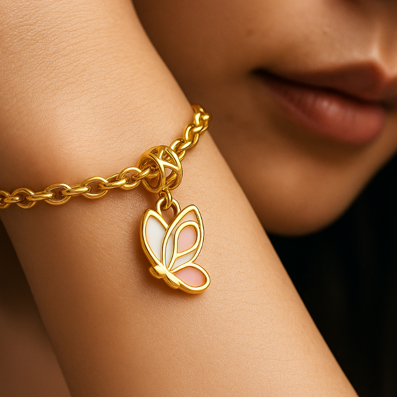 Enamel Butterfly Gold Charm: Modern Whimsy