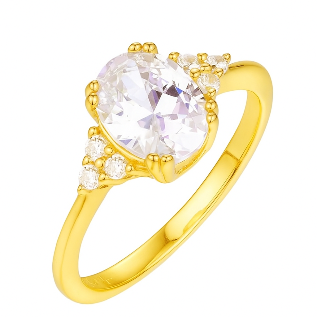An oval diamond cradled by clusters of delicate pavé, like a jewel caught in the arms of light. A romantic, enchanting silhouette that whispers of fairy-tale elegance.