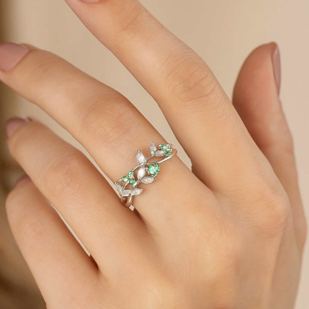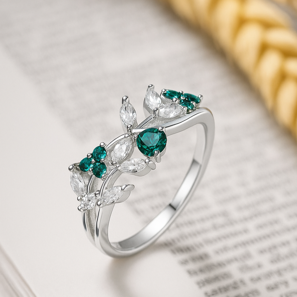 “Enchanted Bloom” Emerald & Diamond Leaf Ring