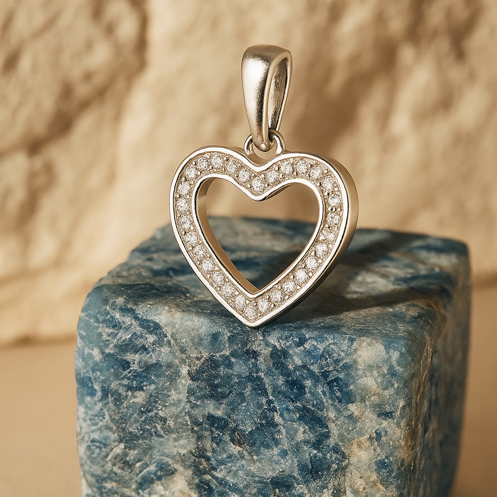 A diamond-lined open heart, symbolizing infinite love and timeless devotion.