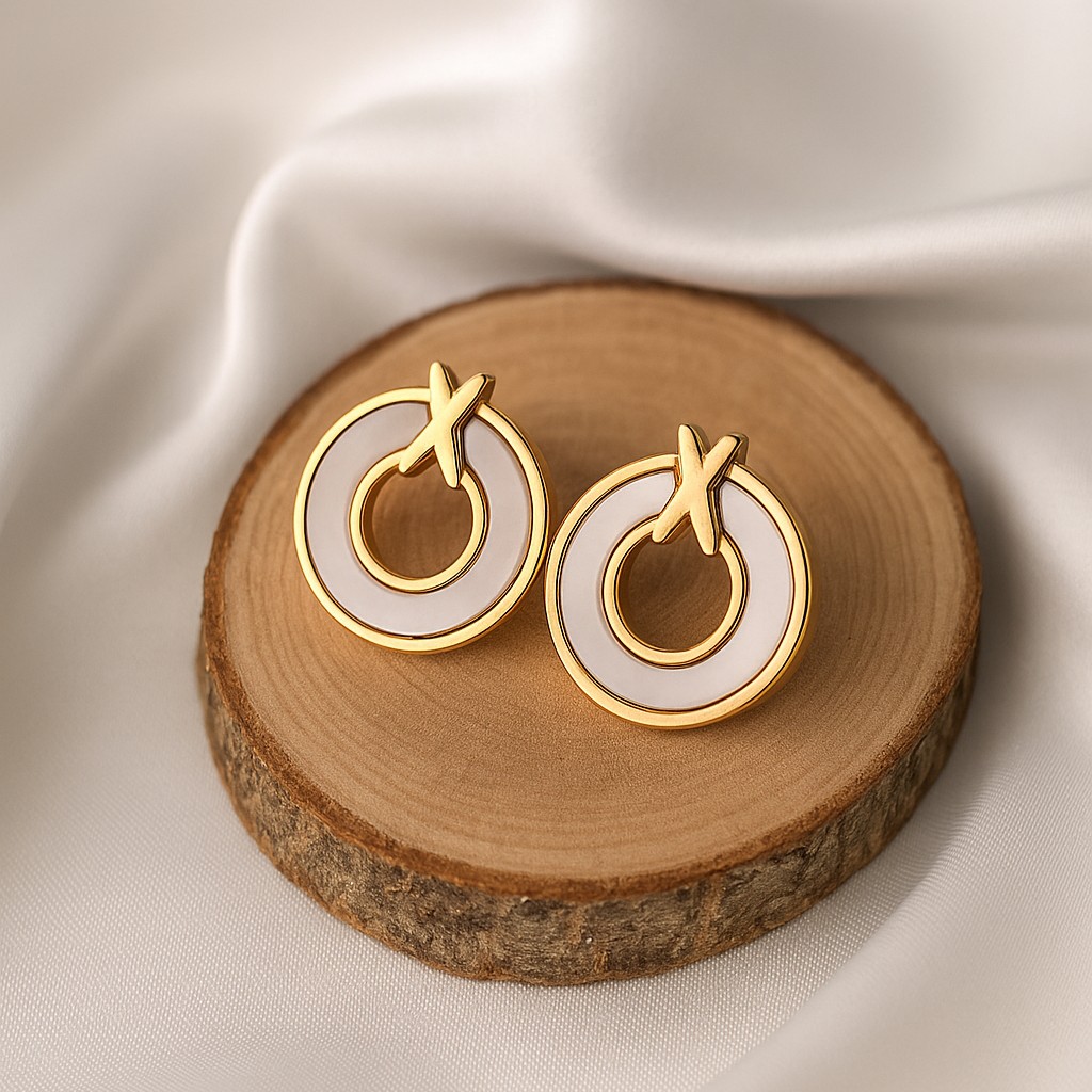 Featuring intersecting “X” accents over gleaming pearl-like centers, these chic earrings symbolize love, connection, and harmony in a modern silhouette.