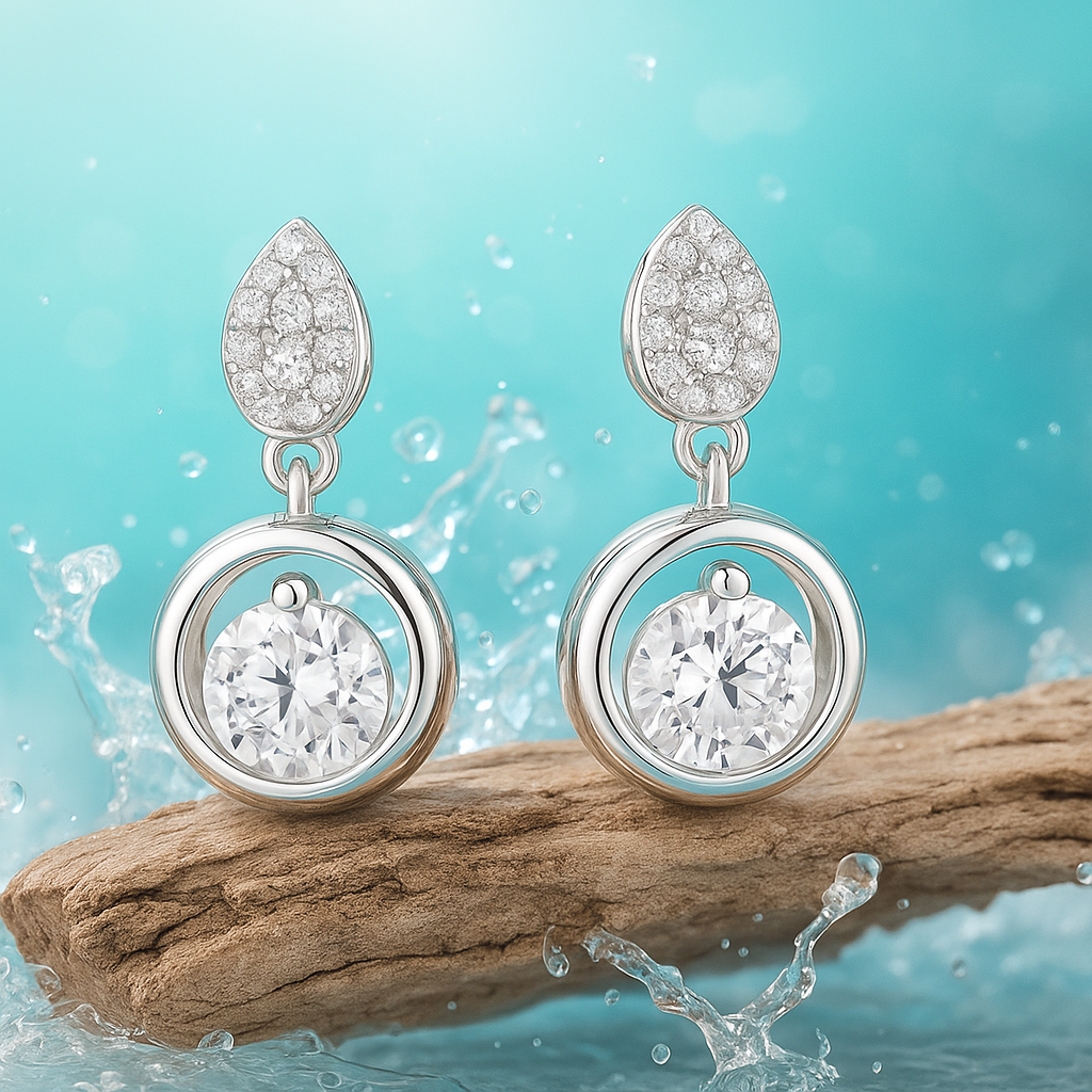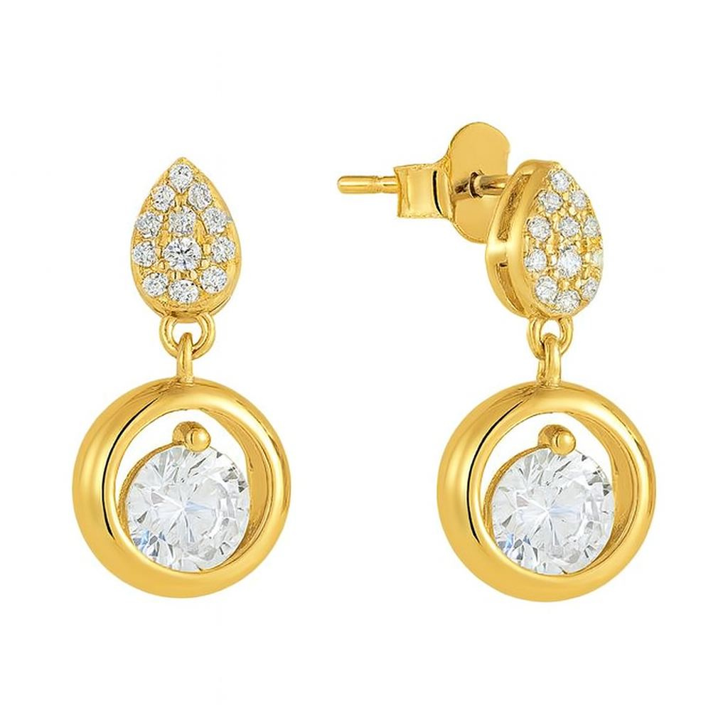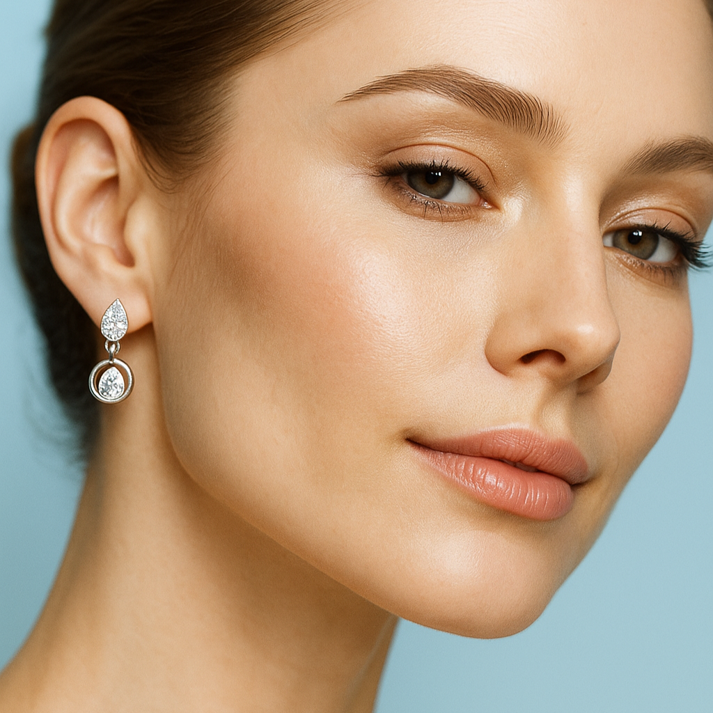 A captivating fusion of geometry and radiance, these earrings feature a central customizable round diamond framed by a diamond-paved pear motif and encircled in an elegant open ring. The VS1 diamonds add layers of sparkle, emphasizing the symmetry of the design. Available in 18k white, yellow, or rose gold, these earrings are an ode to balance, grace, and eternal beauty.