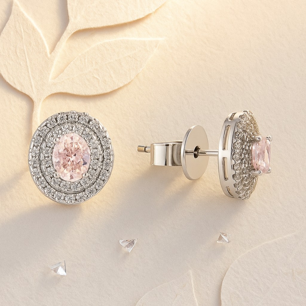 • Timeless and luminous, these studs feature customizable diamond centers encircled by twin halos of brilliance. Their delicate yet powerful presence makes them a versatile treasure — equa