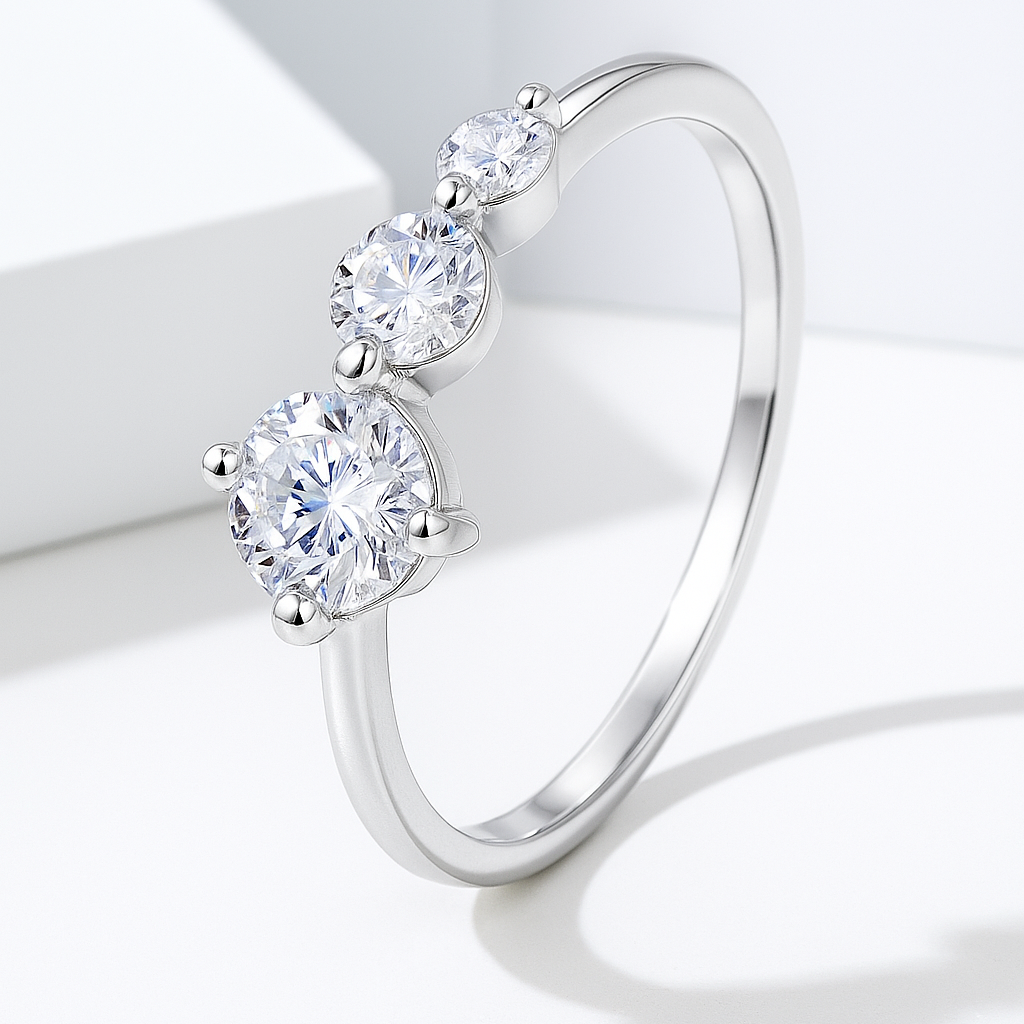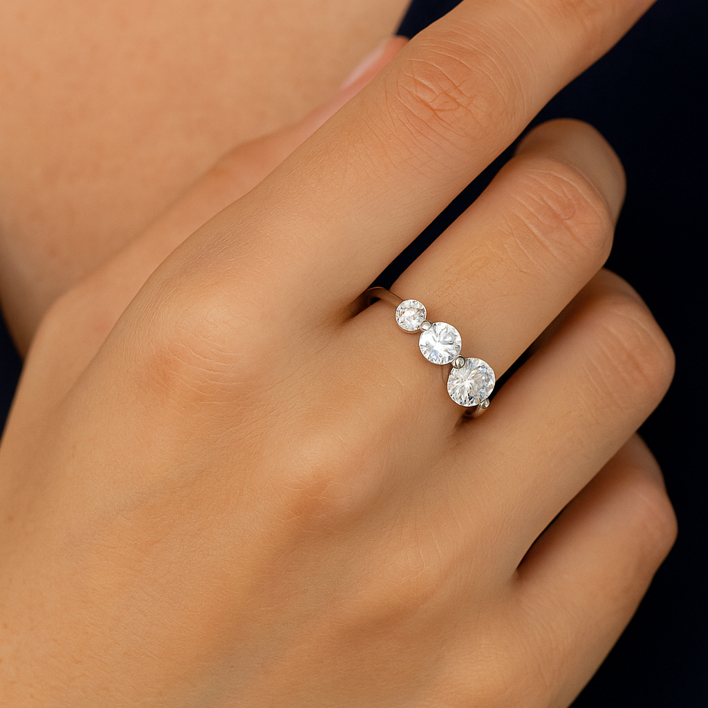 A timeless trilogy of brilliance, where three graduating round diamonds flow in harmony — past, present, and future captured in perfect proportion. The design whispers of continuity, of stories woven together through time, and of love that deepens with each chapter.