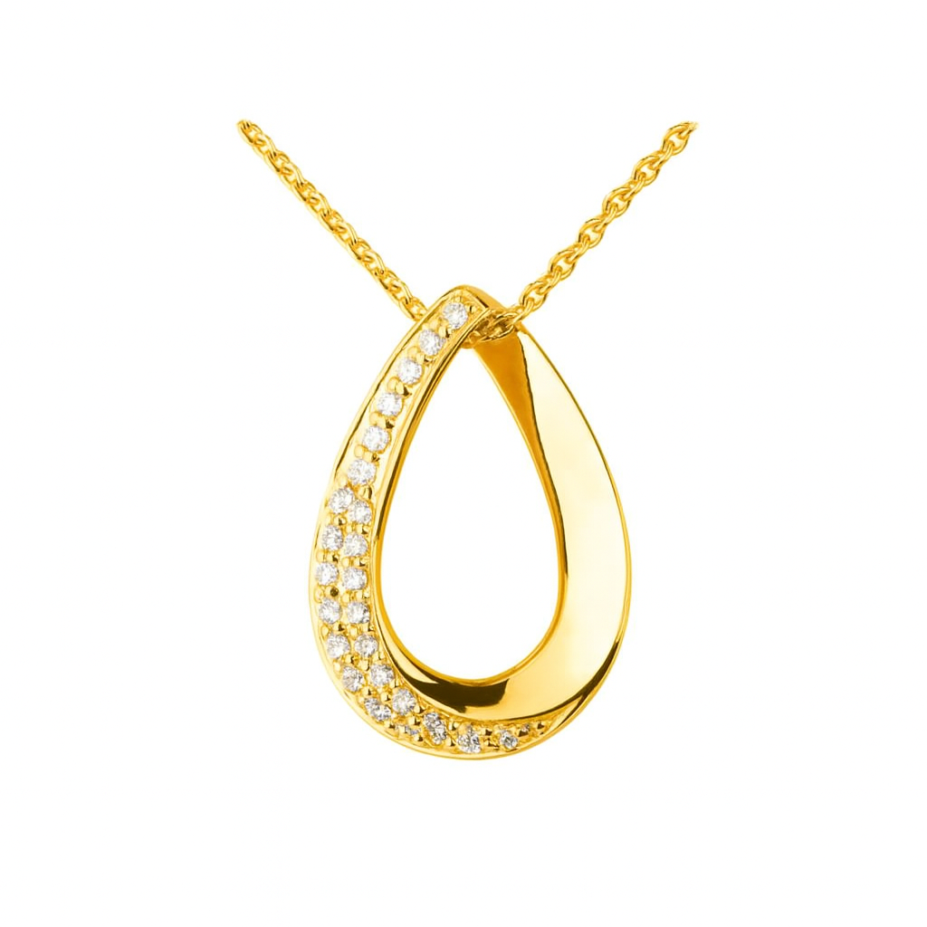 A fluid teardrop silhouette in lustrous gold or platinum, partially encrusted with VS1 diamonds, captures the beauty of infinity. The open form creates a sense of lightness, while the diamond line reflects grace in motion — a piece that speaks of purity and everlasting elegance.