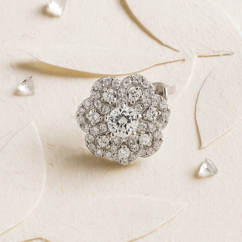 Inspired by the first burst of light at dawn, The Radiant Bloom Collection captures the moment when the world awakens in brilliance. Each piece blossoms with luminous diamonds, echoing the geometry of petals unfurling to greet the morning sun. At once delicate and dazzling, this collection evokes renewal, grace, and the eternal promise of beauty in bloom.