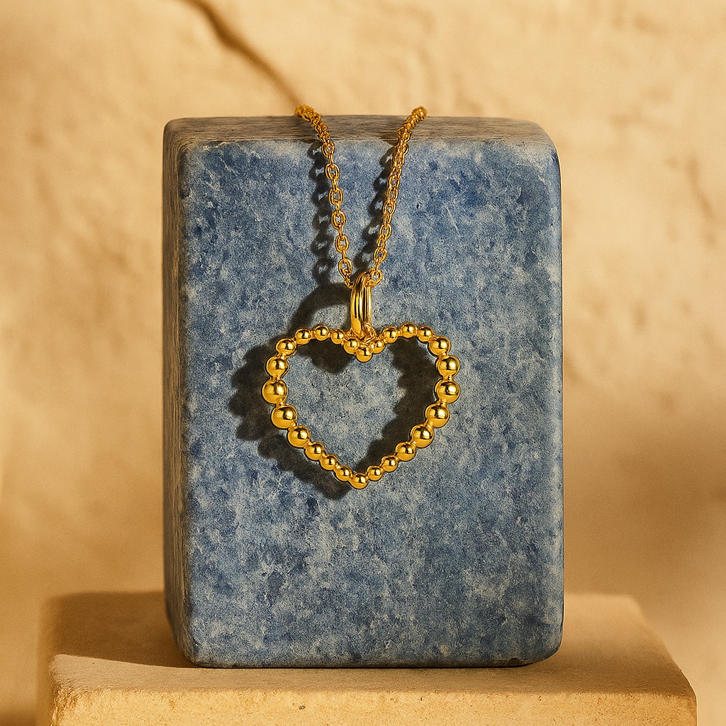 • An open heart formed from polished golden beads, symbolizing purity and endless affection. Also available in both 916 and 999 gold, this pendant is a celebration of love’s eternal glow, crafted for those who cherish simplicity elevated with sophistication.