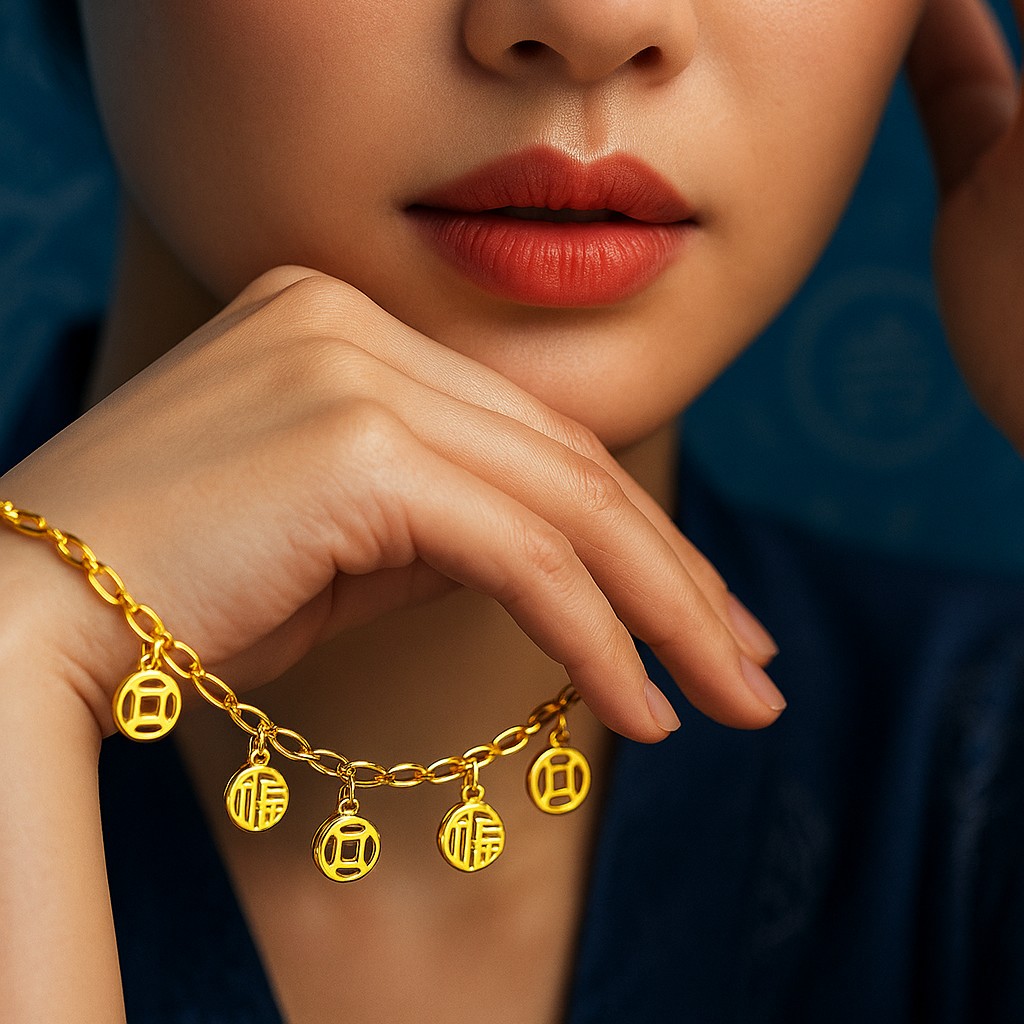 Radiate timeless grace with this 916 gold charm bracelet — where every coin tells a story of fortune, harmony, and elegance.