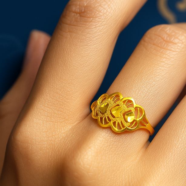 • The Golden Harmony Ring showcases a stunning interplay of textures and shapes, blending soft curves with intricate openwork for a look that’s both bold and graceful. Its symmetrical motif symbolizes unity and elegance, while the polished gold surface catches the light beautifully with every movement. Designed for women who appreciate refined artistry, this ring is a celebration of harmony, strength, and everlasting allure.