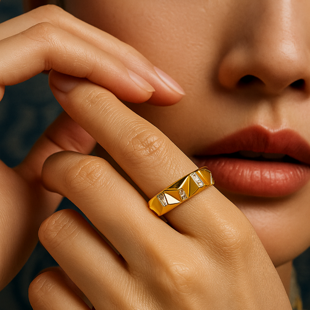A sleek modern gold ring that shines with geometric brilliance and timeless sophistication.