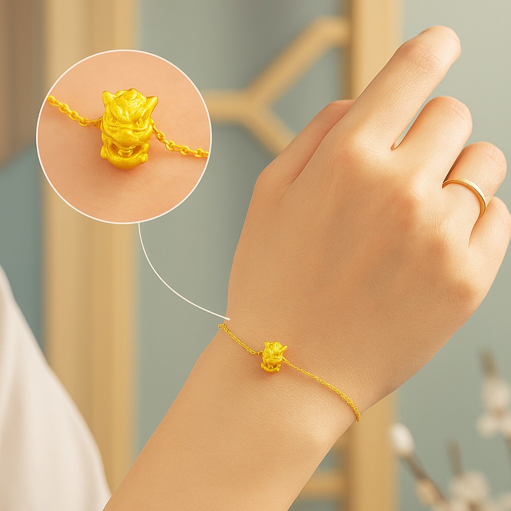 • Intricately sculpted in radiant 916 gold, the Guardian Lion charm embodies ancient strength and spiritual protection. Its detailed 3D design captures the essence of bravery and good fortune, making it a meaningful piece for both daily wear and special occasions. Perfect for adding character and symbolism to your bracelet or necklace, this charm reflects timeless artistry and the power of positivity.