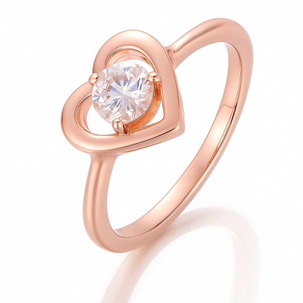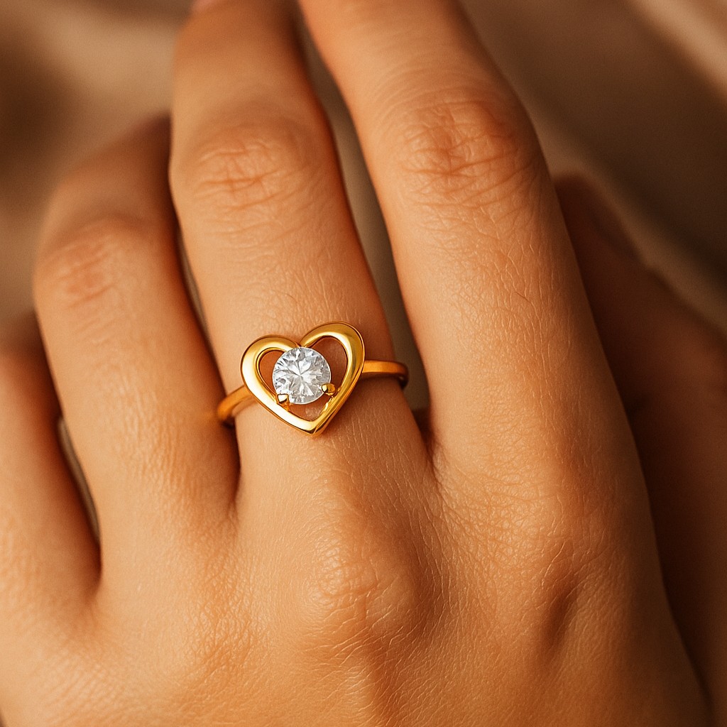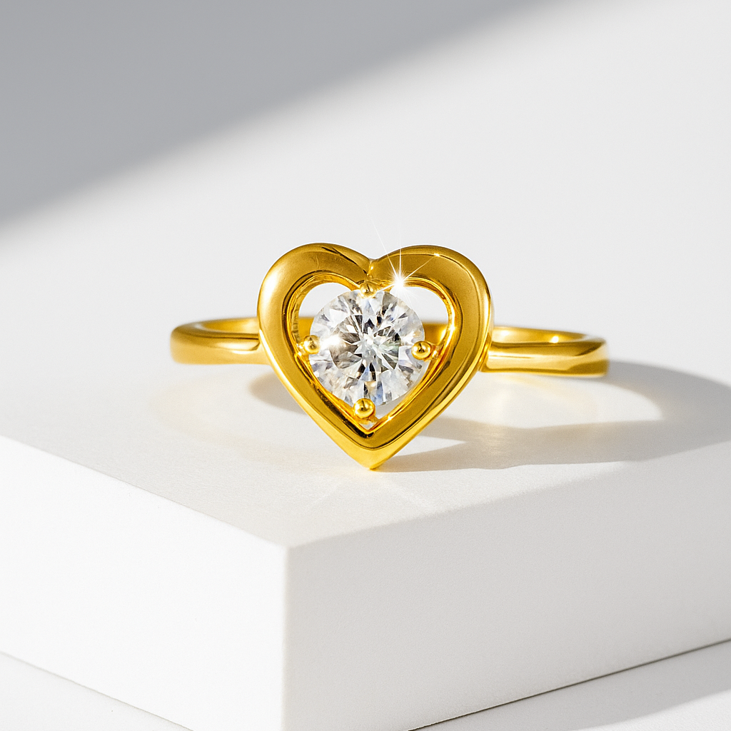 Romance made eternal. A radiant round diamond is cradled inside a bold golden heart, a fusion of passion and elegance. This design captures love’s warmth in every detail, making it a sentimental and sophisticated jewel. Available in white, yellow and rose gold.