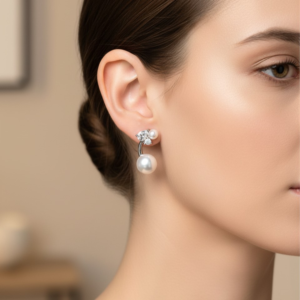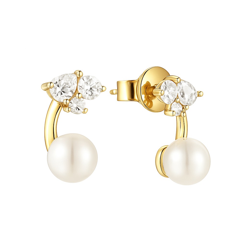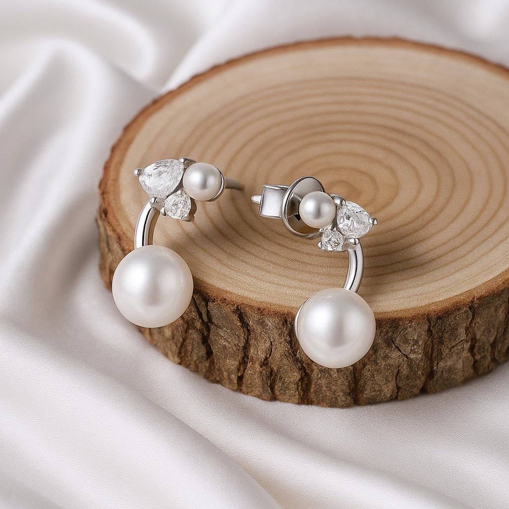 Glistening pearls rest beneath a crown of diamonds, merging timeless softness with sparkling clarity. The Lustrous Dream earrings whisper of romance and elegance, balancing modern artistry with classic charm.