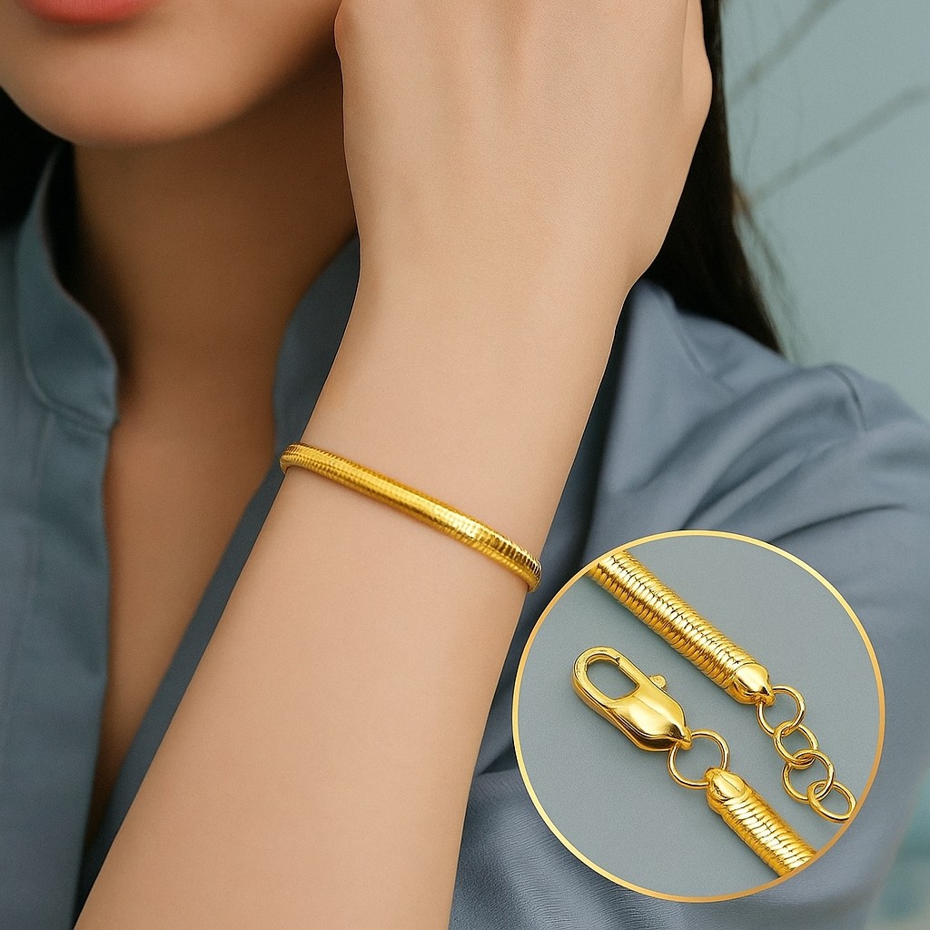 A luminous 916 gold bracelet with a sleek snake-chain flow that exudes timeless sophistication.