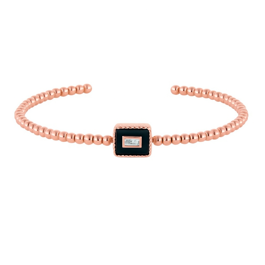 A striking rectangular motif, framed in deep enamel and crowned with a singular VS1 diamond at its centre. Bold yet refined, it captures the allure of contrast — darkness framing brilliance. Perfect as a standalone statement or as part of a curated stack.