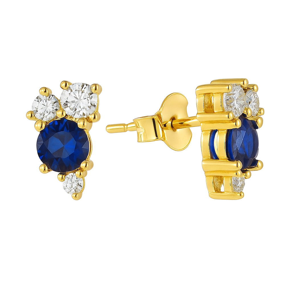 Midnight Serenade” Sapphire & Diamond Earrings Crafted in 18k white, yellow, or rose gold, these earrings showcase the deep, velvety allure of round-cut blue sapphires, elegantly framed by a delicate trio of VS1 diamonds that glisten like scattered starlight. The design balances vibrant depth with radiant brilliance, evoking the romance of a midnight sky alight with constellations. Feminine yet bold, they are an ode to timeless elegance and modern refinement. Cohesive Collection Description – The Midnight Symphony Collection