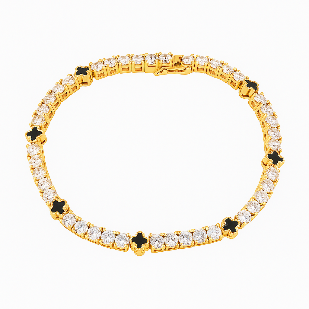 Diamond brilliance is heightened by jet-black accents in this refined design, where alternating links create a striking contrast of light and shadow. Evocative of moonlit soirées and midnight mysteries, this bracelet speaks to those with an affinity for rare elegance.