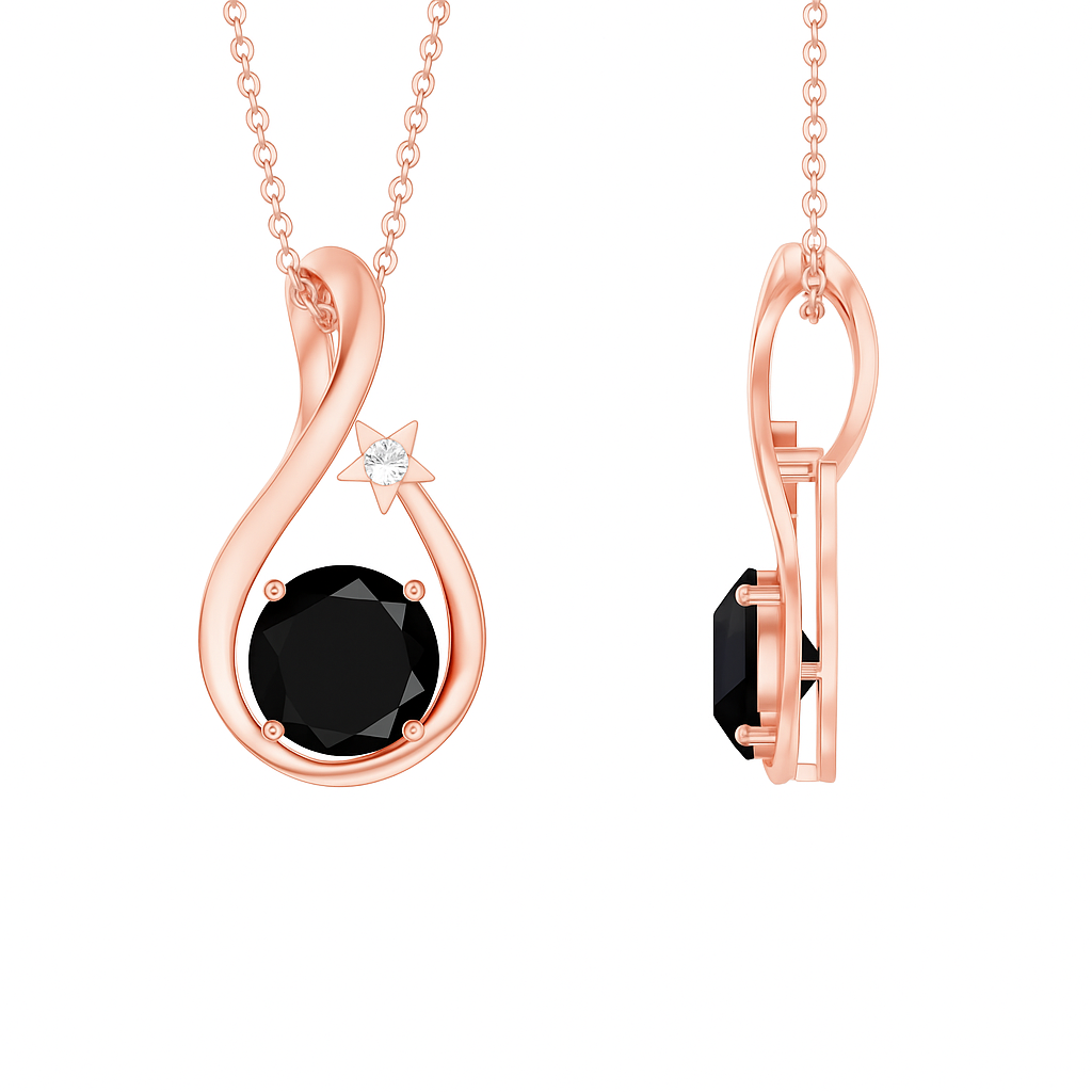 A bold 21mm pendant where a striking customizable black gemstone rests within a sweeping gold curve, accented with a single VS1 diamond star. This design embodies mystery, strength, and the rare elegance of night’s quiet power.