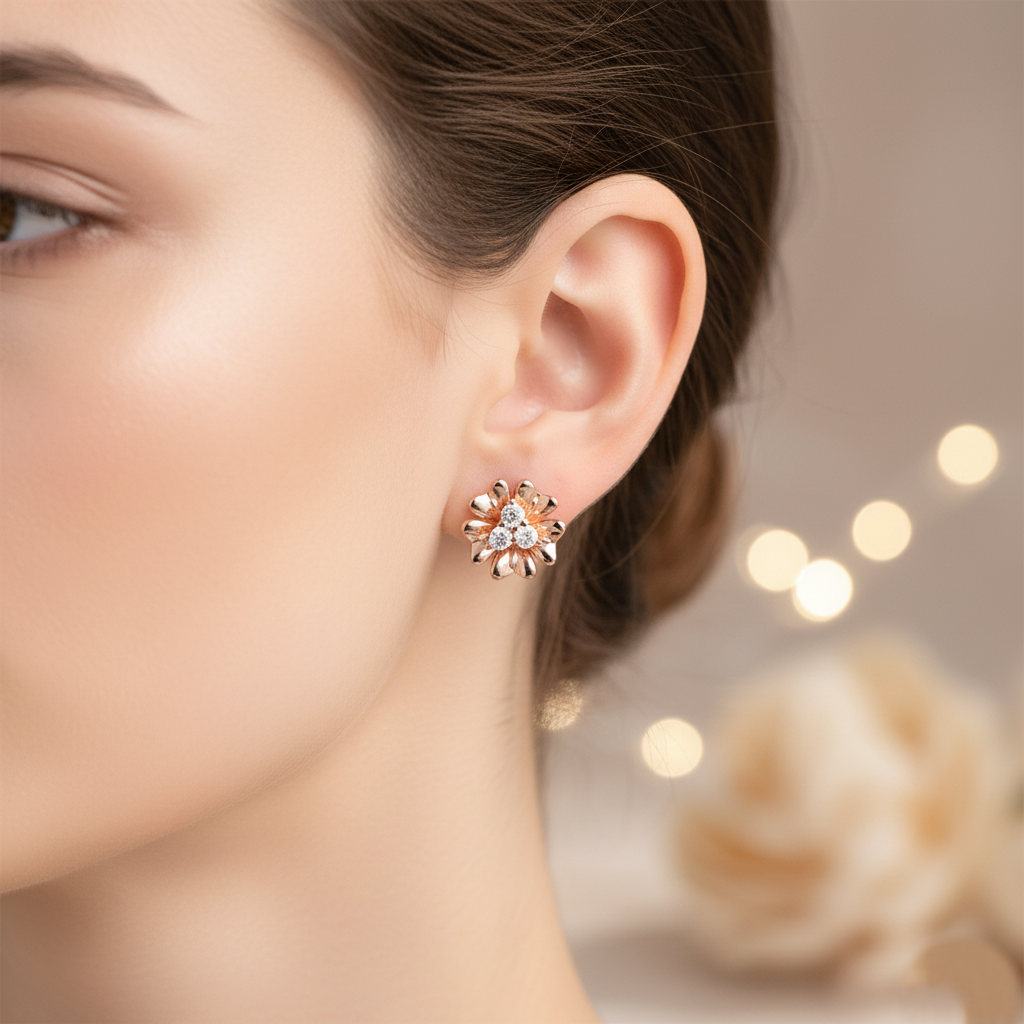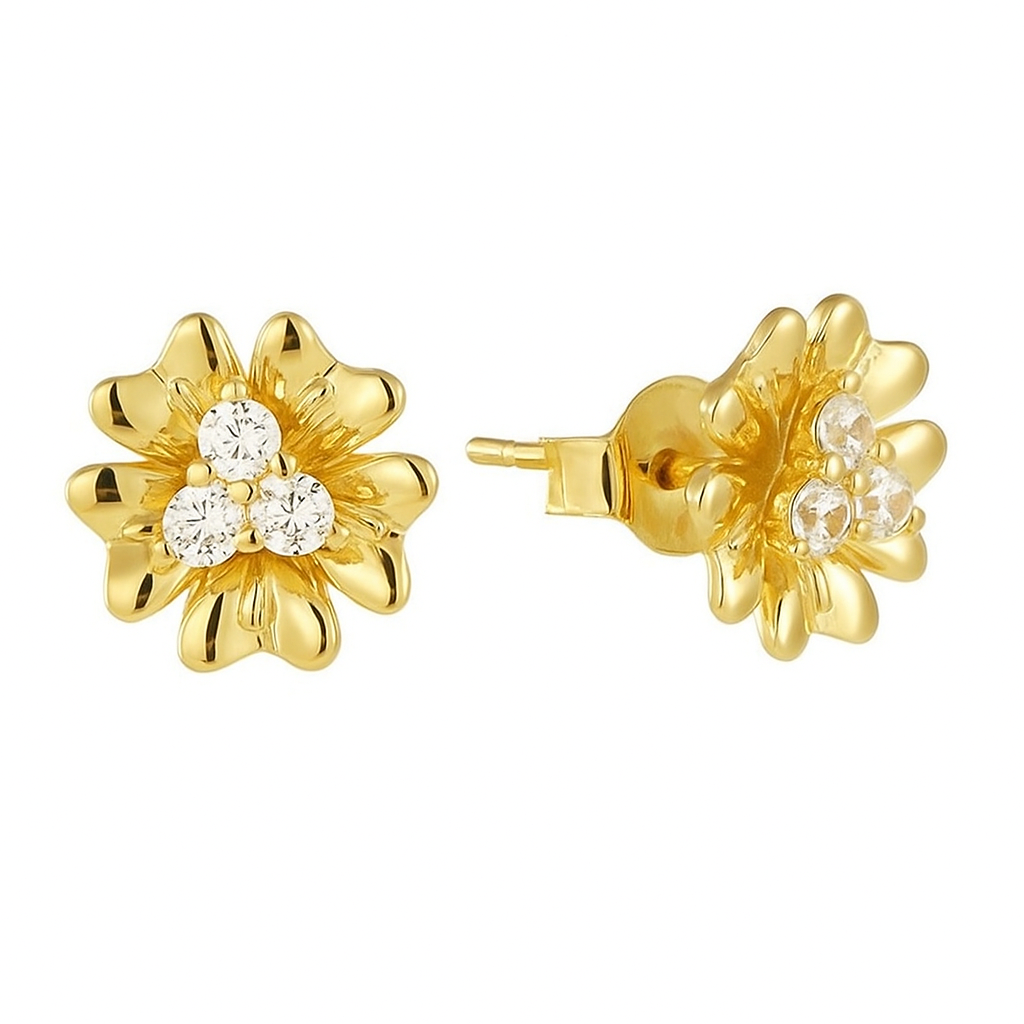 Softly sculpted petals of gold embrace a cluster of diamonds, blooming with radiant warmth. Each curve evokes the quiet magic of dawn, when light first kisses the earth and awakens its beauty. Gentle yet powerful, these earrings are a celebration of renewal, joy, and the everlasting charm of nature.