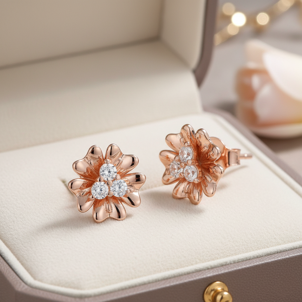 “Petals of Dawn” Diamond Cluster Stud Earrings