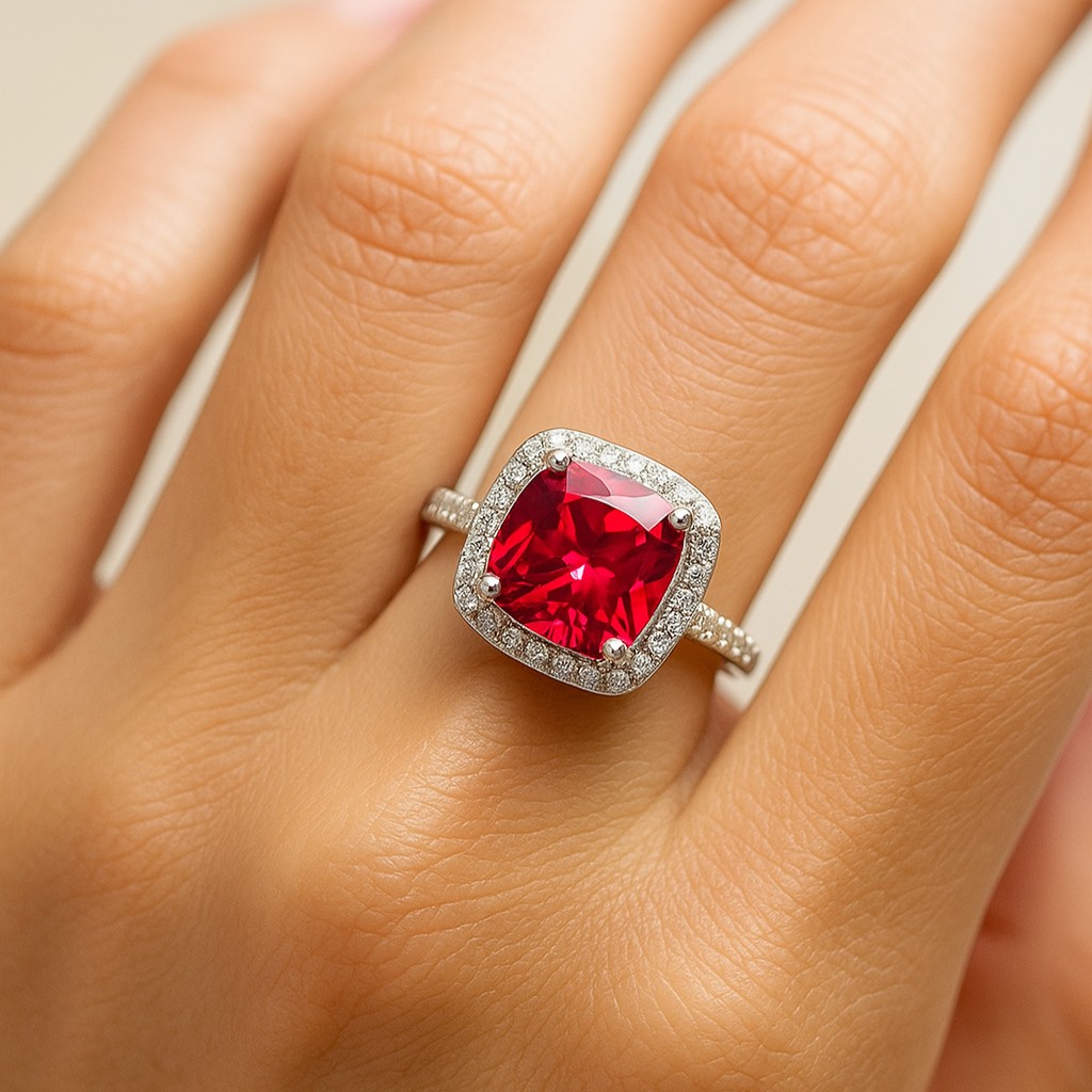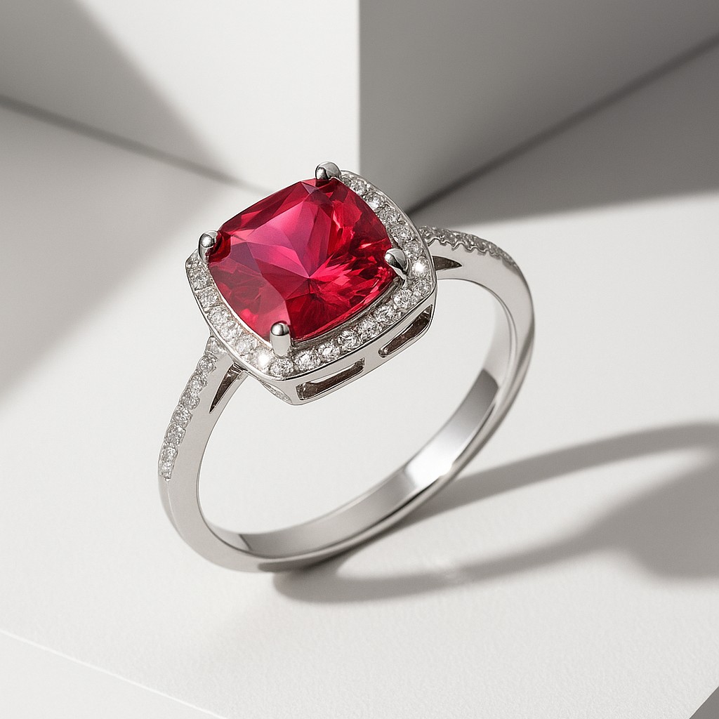 The Radiance Collection embodies the eternal allure of gemstones kissed by light. Featuring a striking cushion-cut center stone framed in a halo of brilliance, each piece captures both passion and refinement. Whether chosen as a diamond, ruby, sapphire, emerald, or a luminous semi-precious stone, the Radiance Collection is designed to celebrate individuality and timeless sophistication.