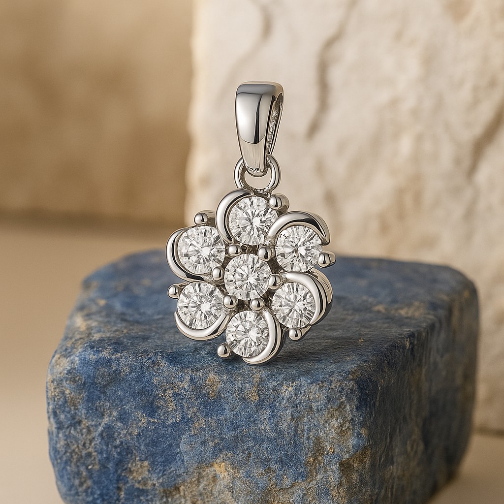 A dazzling cluster of VS1 diamonds arranged in a floral motif, each petal unfolding with brilliance. This piece is a tribute to nature’s perfection and the everlasting beauty of fine craftsmanship.