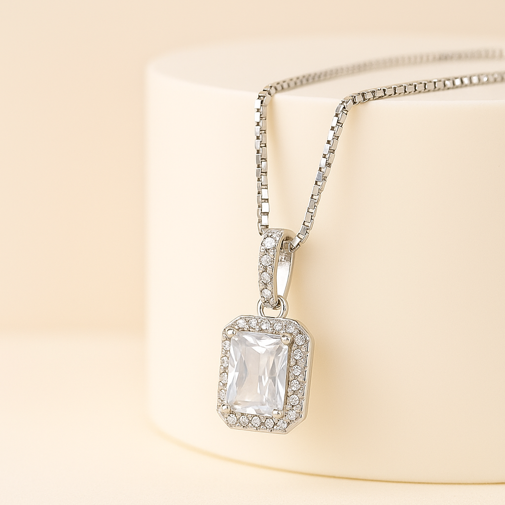 18k white, yellow, or rose gold with VS1 diamonds A bold square-cut diamond center, encircled by luminous VS1 diamonds, radiates power and allure. This pendant is the epitome of regal elegance — a statement of confidence, refinement, and modern majesty.