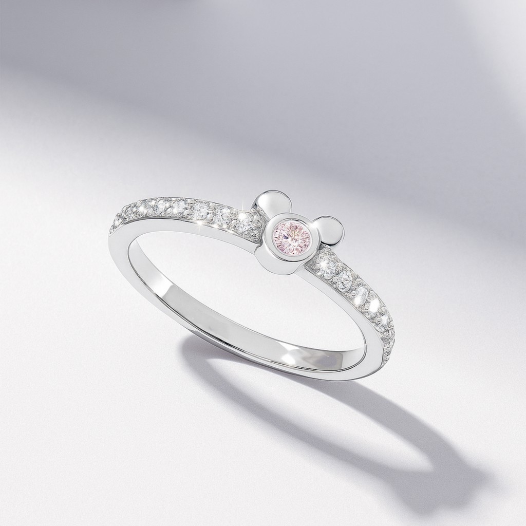• With a blush-pink stone at its heart and dazzling pavé accents along the band, this ring balances chic style with a touch of mischief. A statement of fun-loving sophistication, perfect for stacking or wearing solo.