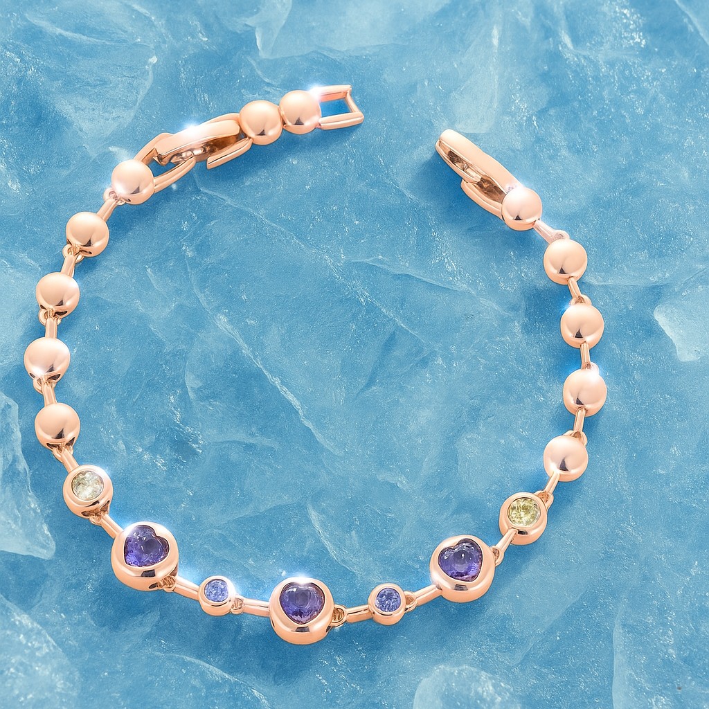 • Crafted in 18k rose gold, this bracelet radiates romance through its delicate line of polished golden beads, interspersed with luminous purple heart-shaped amethysts and VS1 diamonds. A symbol of love and individuality, it drapes gracefully around the wrist, whispering elegance with every movement.