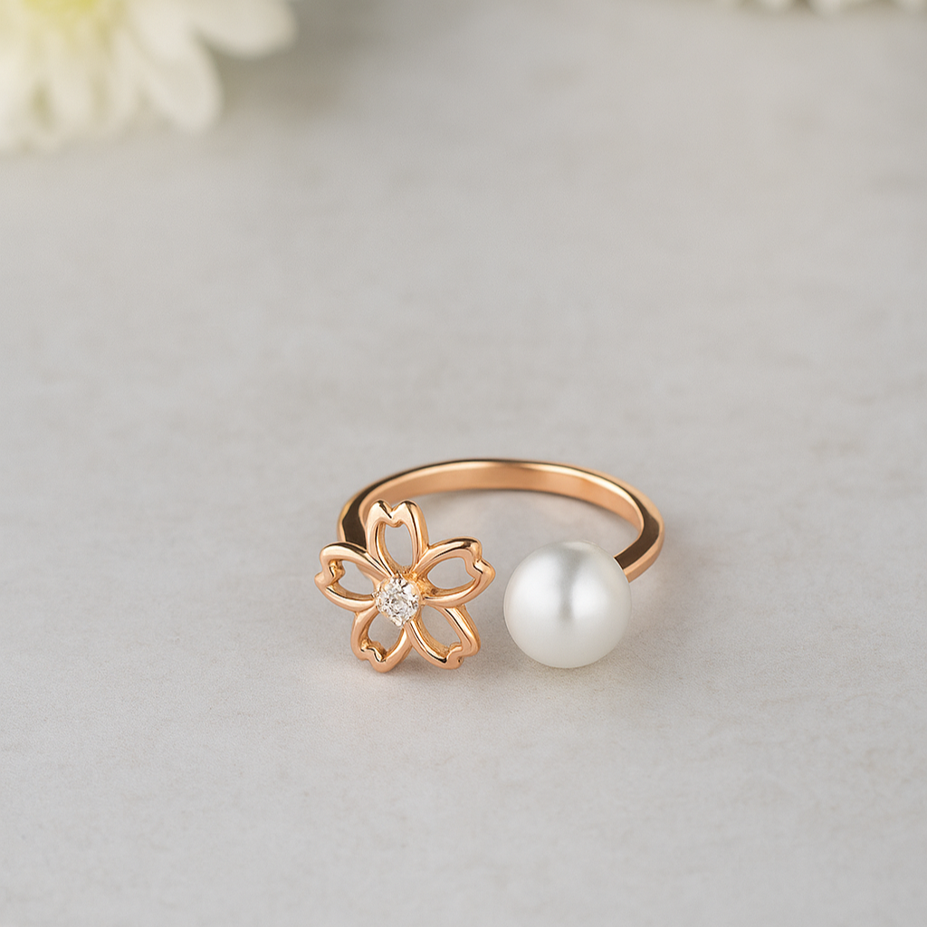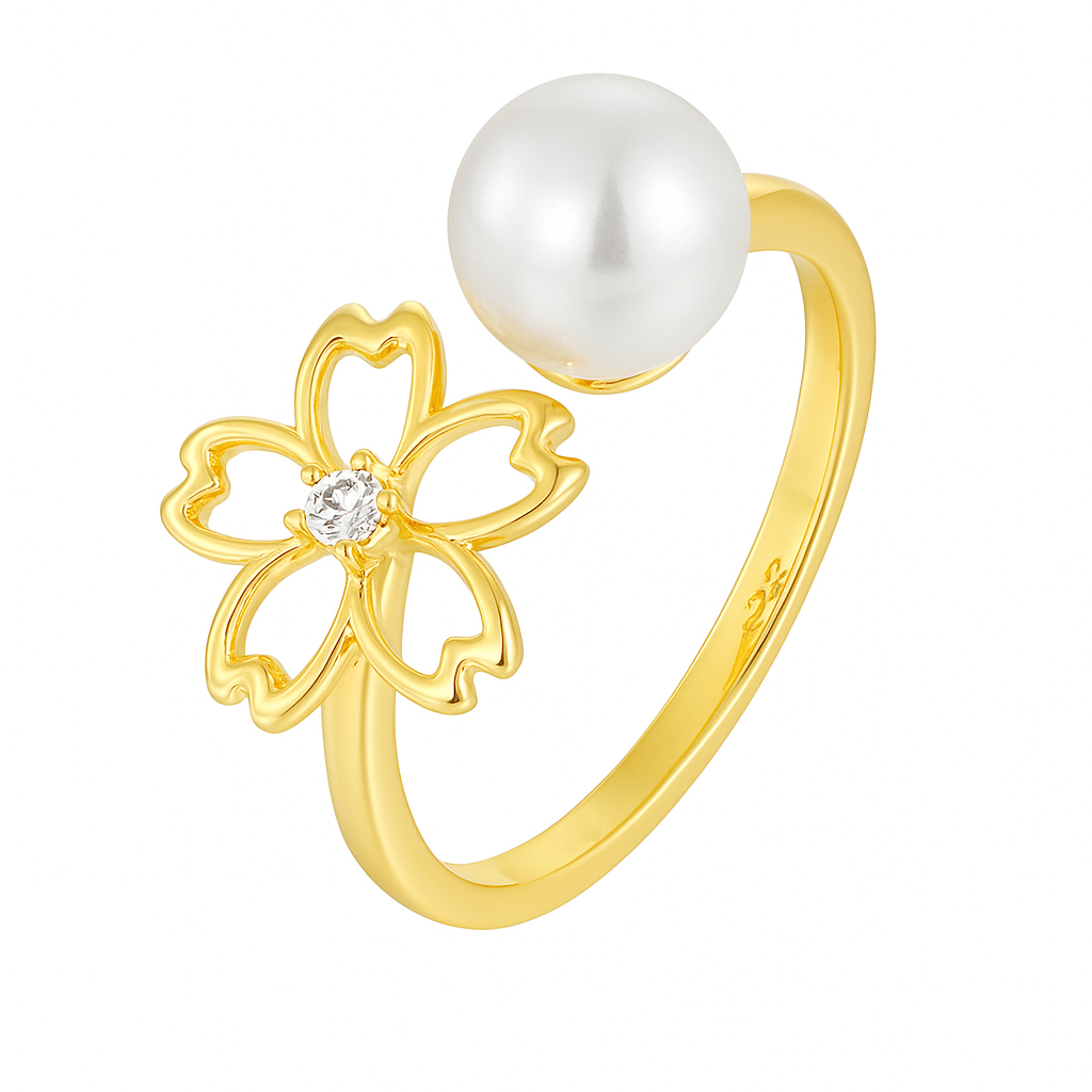 Sakura Blossom & Pearl Open Ring