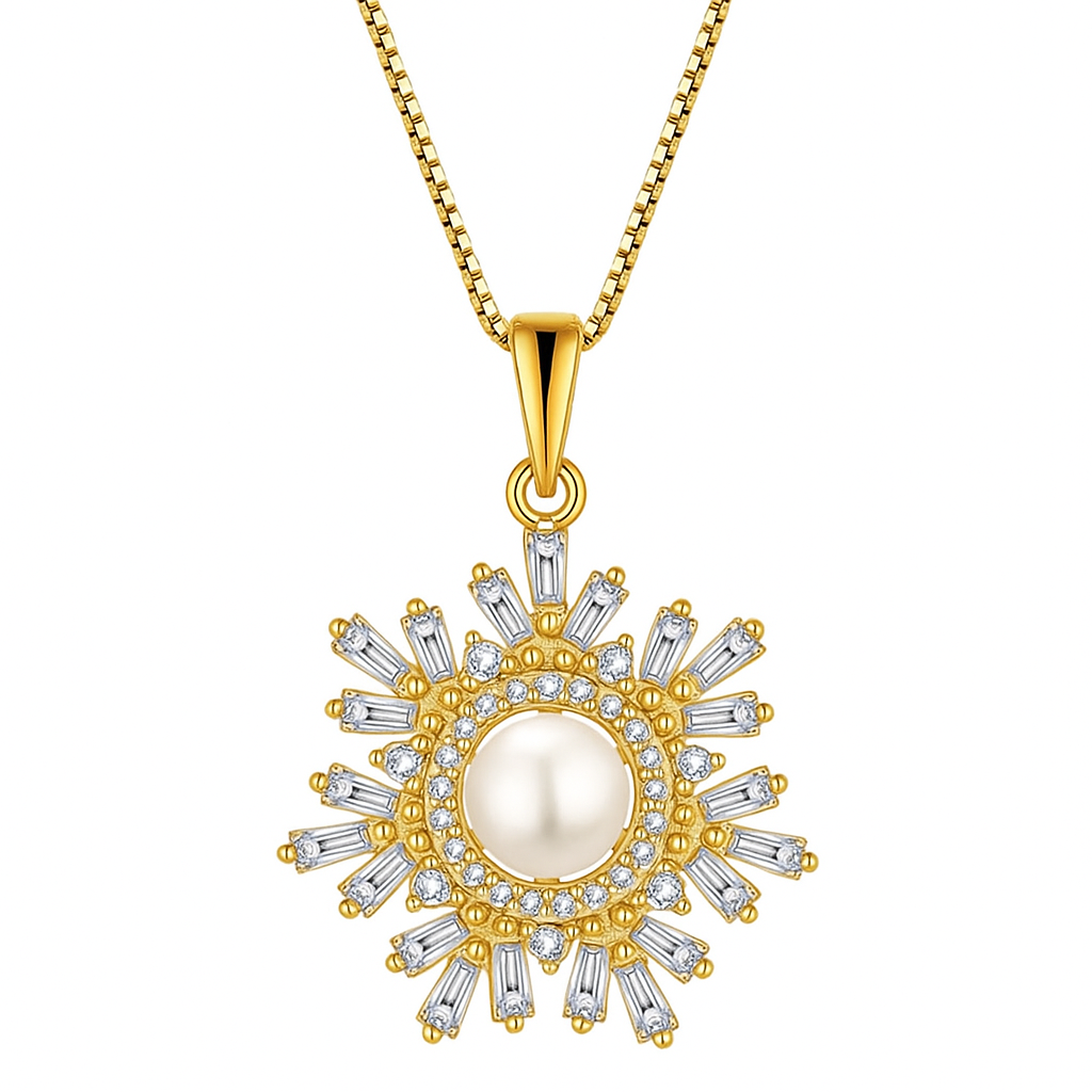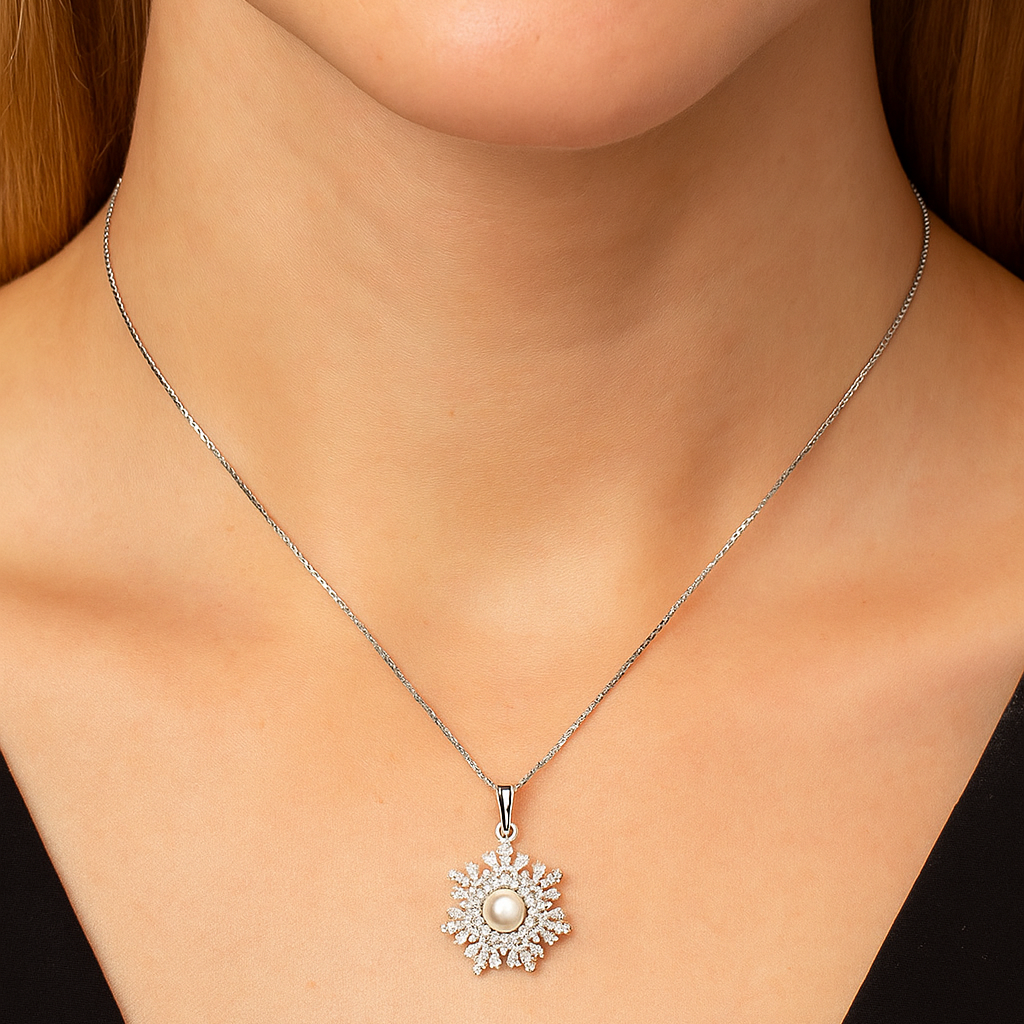 A wintry masterpiece, this pendant combines the icy sparkle of VS1 diamonds with the soft lustre of a central freshwater pearl. Set in 18K gold, available in white, yellow, or rose, it’s the perfect blend of seasonal charm and timeless luxury.