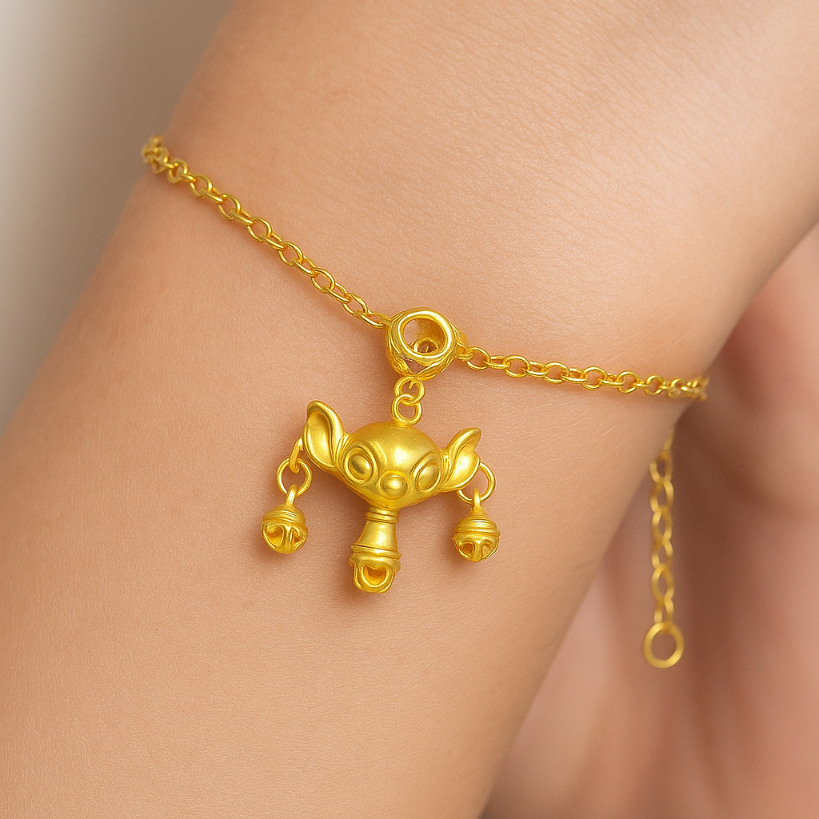 • This spectacular gold charm is a true miniature sculpture, crafted in an intricate 5D design (approx. 13mm) featuring an adorable, whimsical character with detailed accents and dangling elements. The depth and craftsmanship are undeniably luxurious, offering a high-end, imaginative piece unlike any other. Wear this captivating charm as a modern statement that carries the magic of your unique personality and golden dreams.