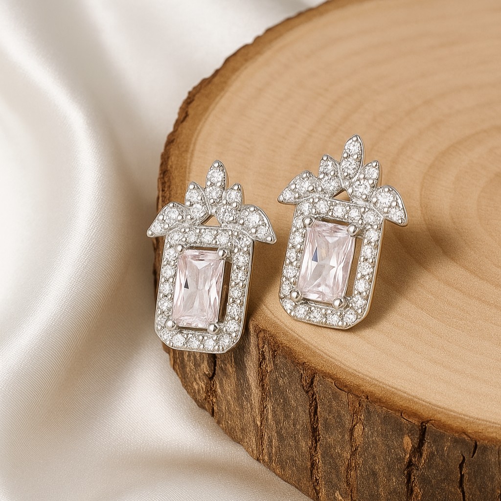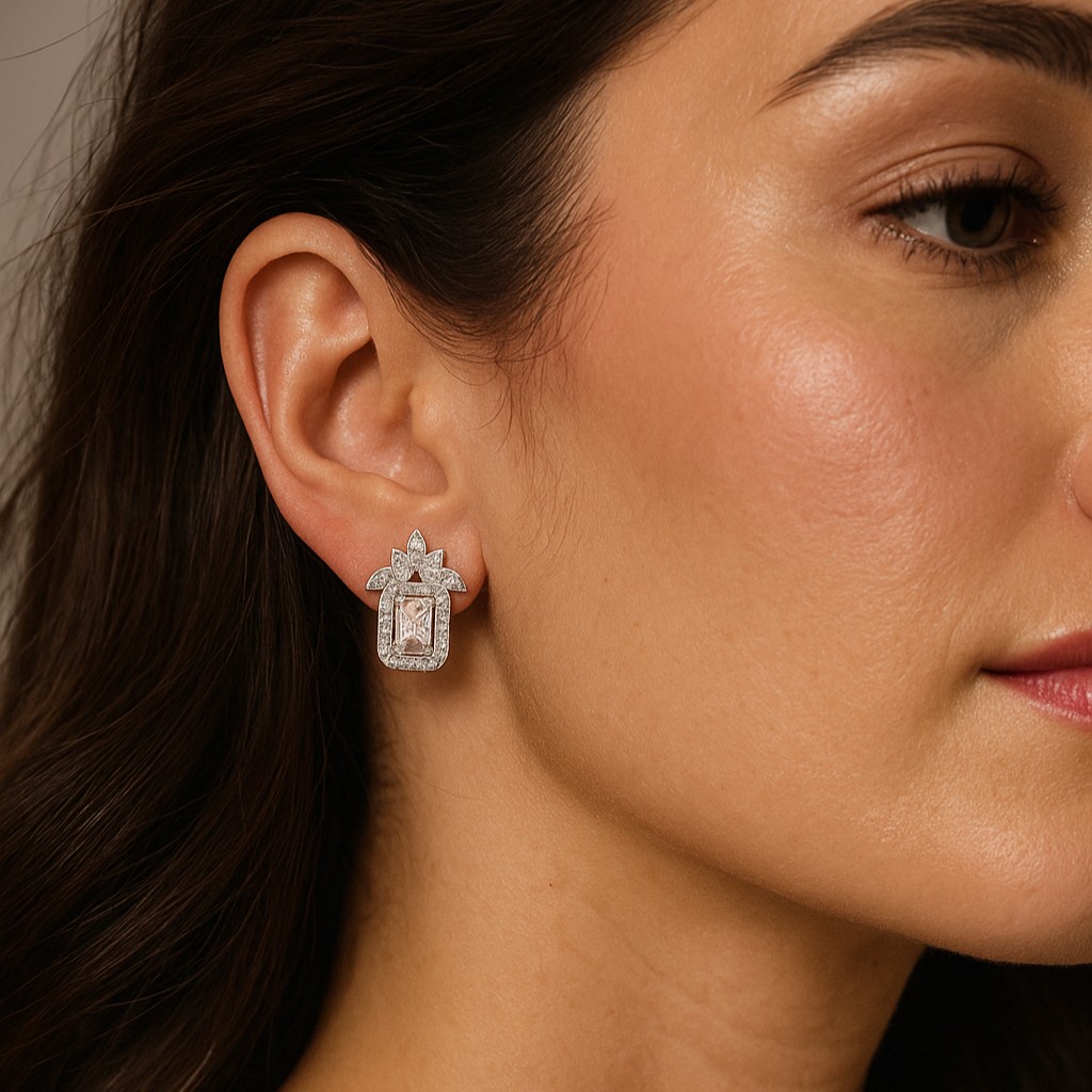 These emerald-cut studs, framed with a halo of brilliant pavé-set stones, embody understated grandeur. Their architectural silhouette ensures they sit close to the ear with commanding presence, perfect for both regal evenings and refined everyday elegance. They are jewels that whisper confidence, designed to be treasured for a lifetime and passed down through generations. The Eternal Radiance Collection