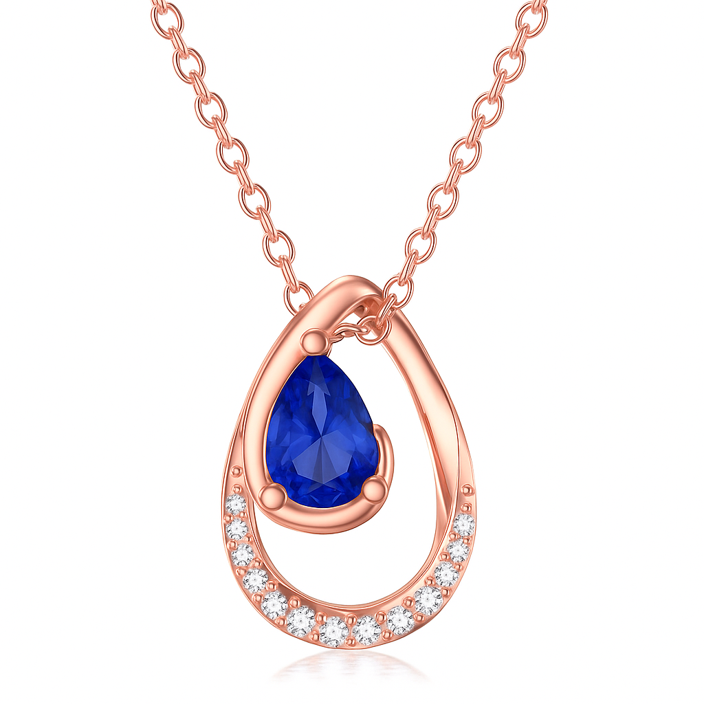 A teardrop of gold curves gracefully into eternity, cradling a deep, royal-blue customizable sapphire. A halo of VS1 diamonds adds a radiant brilliance, echoing the beauty of resilience found within every tear shed for love, hope, and strength.