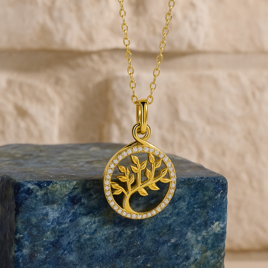 Encircled in golden radiance, a flourishing tree stretches its branches toward the heavens, each leaf delicately framed in VS1 diamonds. A symbol of vitality, growth, and legacy, this pendant is a timeless emblem of life’s enduring strength and beauty.