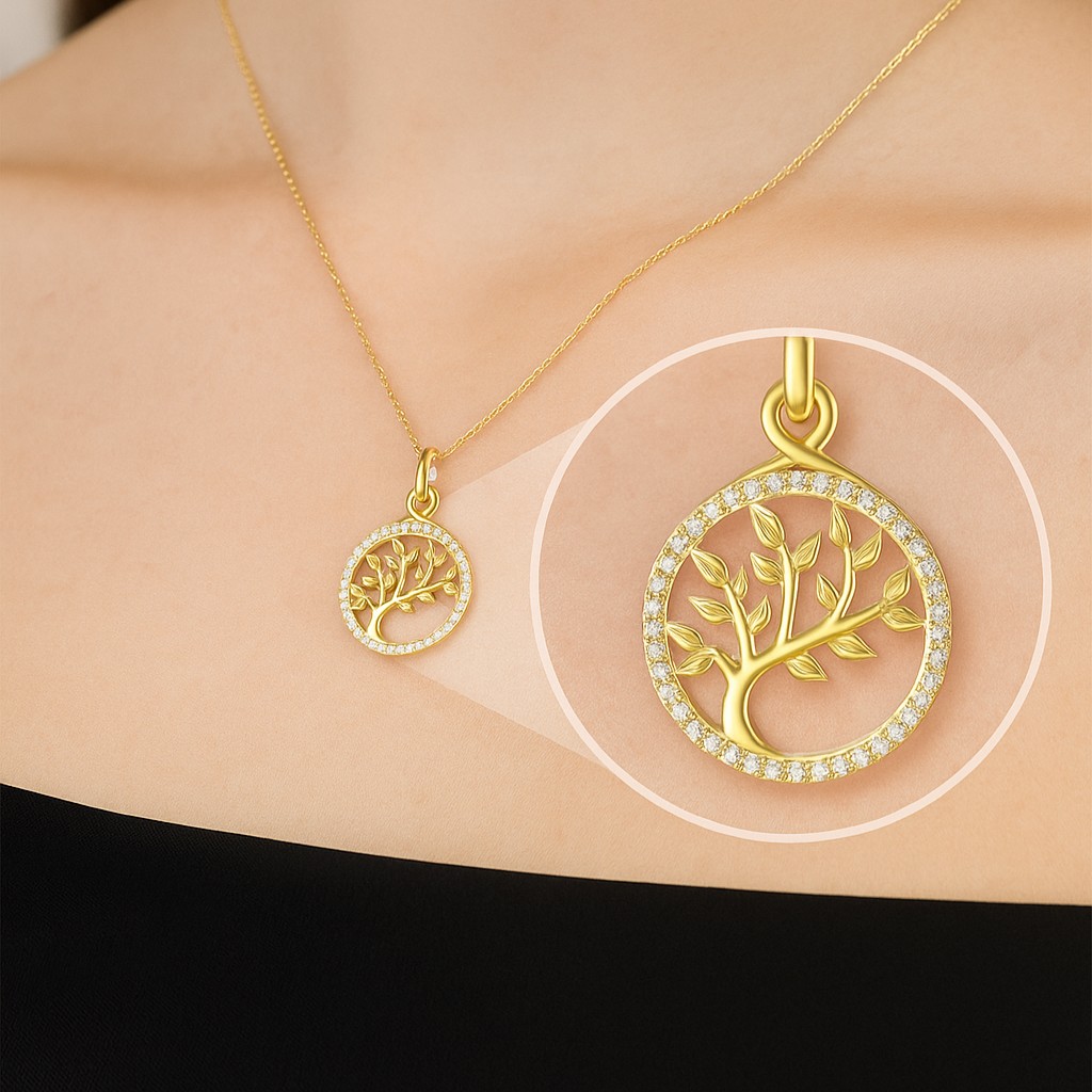 • Encircled in golden radiance, a flourishing tree stretches its branches toward the heavens, each leaf delicately framed in VS1 diamonds. A symbol of vitality, growth, and legacy, this pendant is a timeless emblem of life’s enduring strength and beauty.