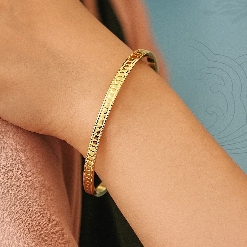 Where modern design meets timeless gold — a 916 bangle that embodies strength, elegance, and quiet confidence.