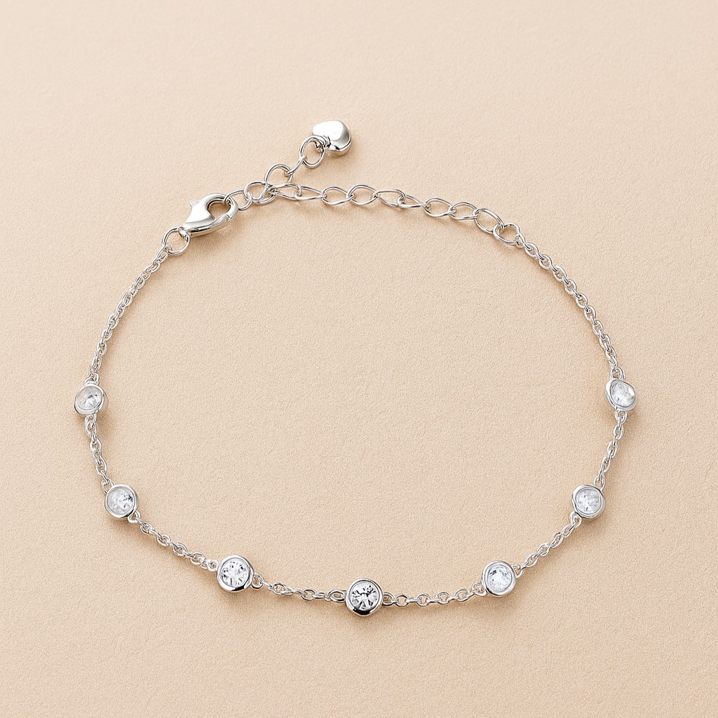 A delicate chain adorned with bezel-set diamonds captures the soft sparkle of starlight across a night sky. Subtle yet mesmerizing, this bracelet whispers understated luxury and celestial elegance.